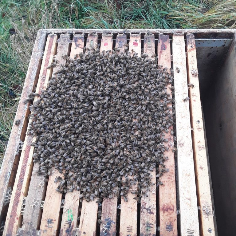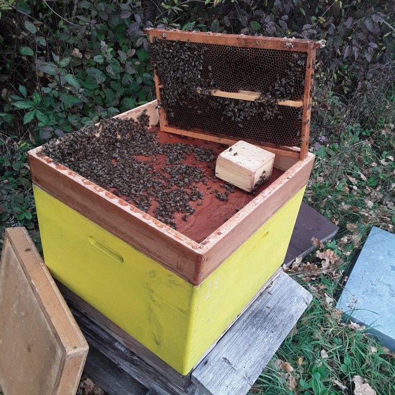 Da es nun bis April quasi keinen Blütennektar mehr geben wird und die Bienen (gerade um die Wärme in den Kästen halten zu können) doch noch Einiges an Futter brauchen werden, müssen diese nun auf genügend Vorräten sitzen.