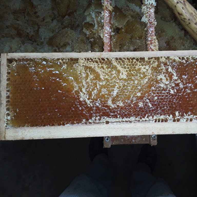 Heuer konnten wir je Bienenvolk durchschnittlich etwa 33kg Blütenhonig im Juni und nochmal 14 kg Sommerhonig im Juli ernten.