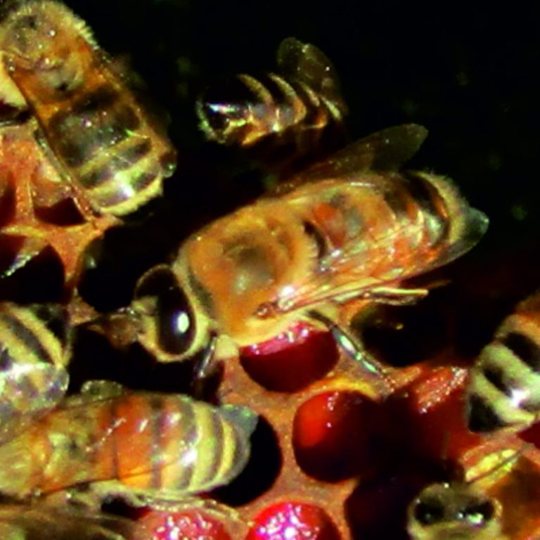 Ein neue Königin entsteht, indem die Bienen eine gewöhnliche Arbeiterinnenlarve mit Gelee Royal füttern